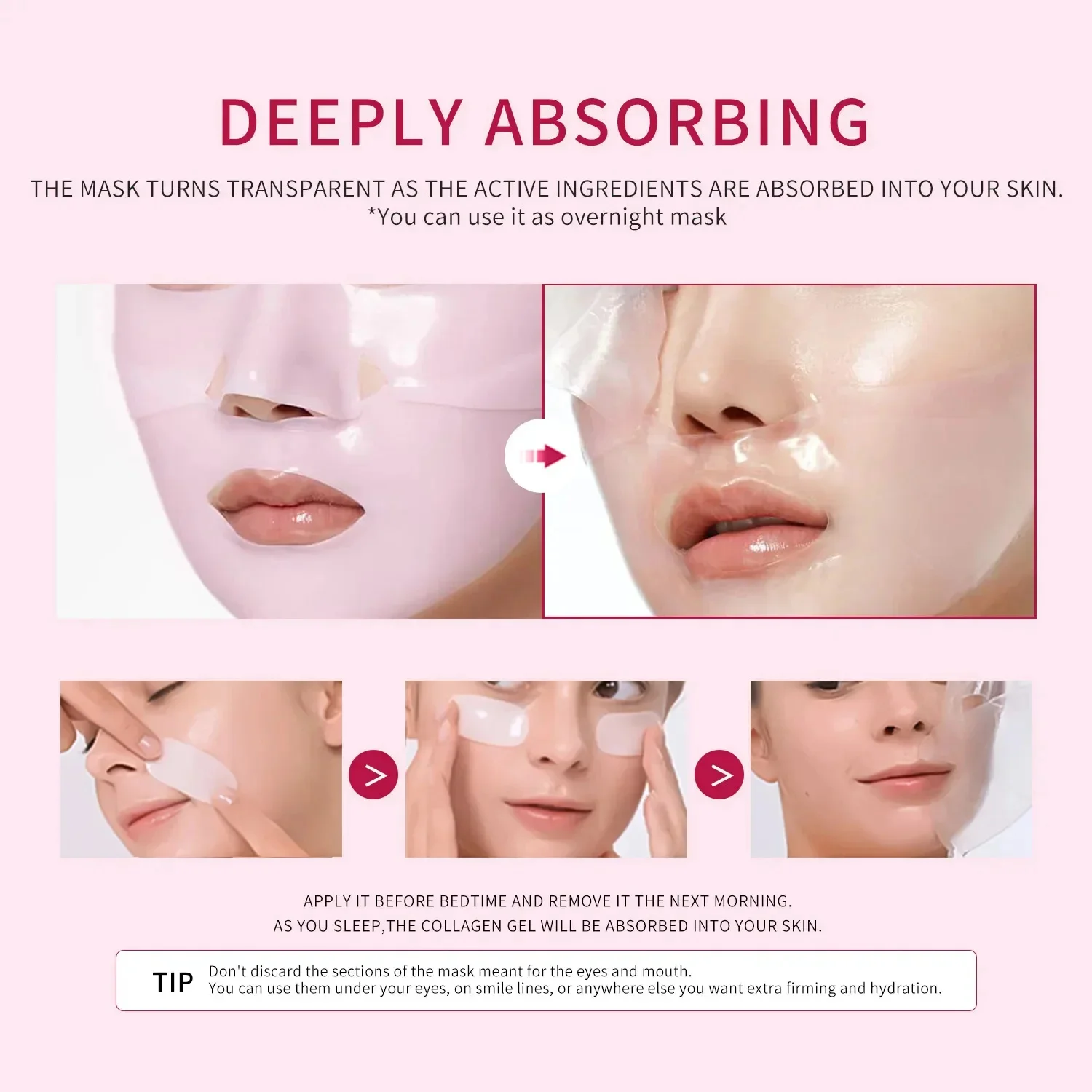 Pink Collagen Gel Salmon Pdrn Facial Mask,Deep Hydrating,Moisturizing And Firming Hydrogel Jelly Face Sheeets,Balance Skin Tone
