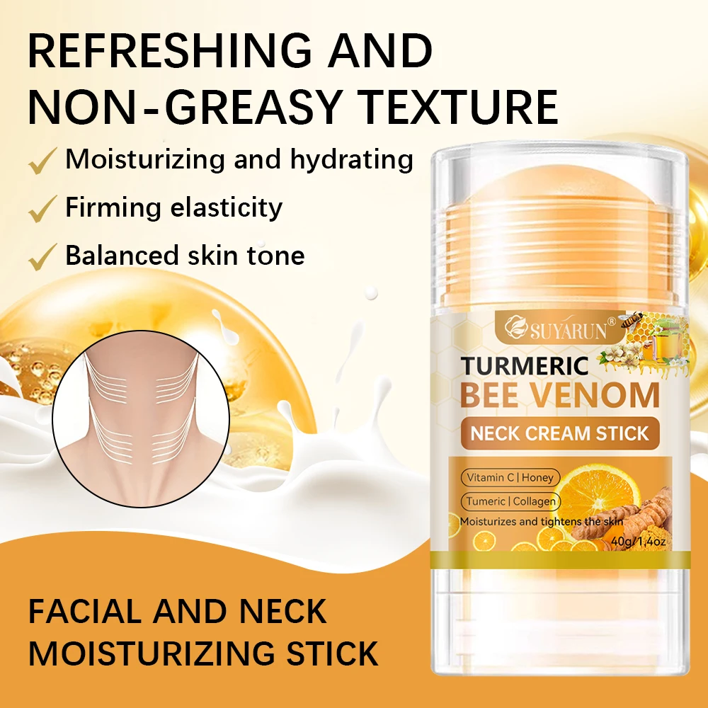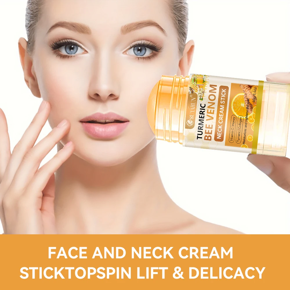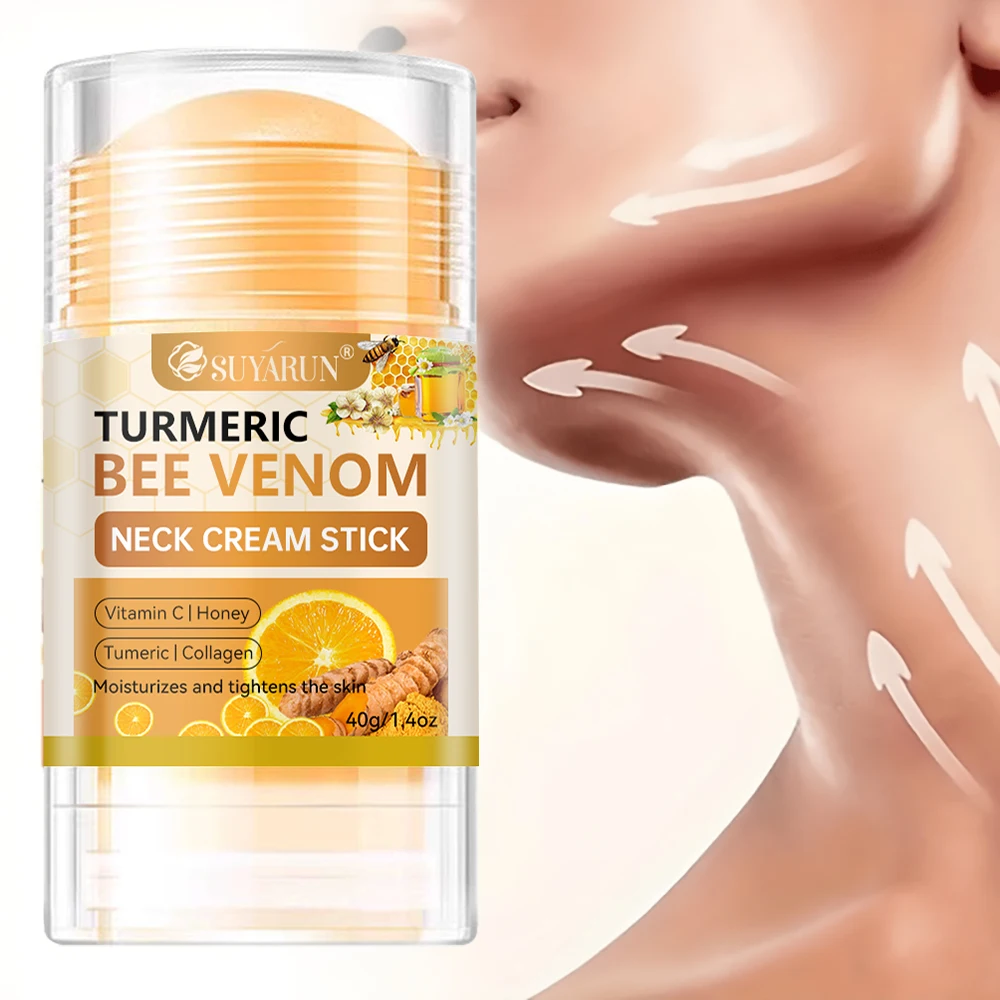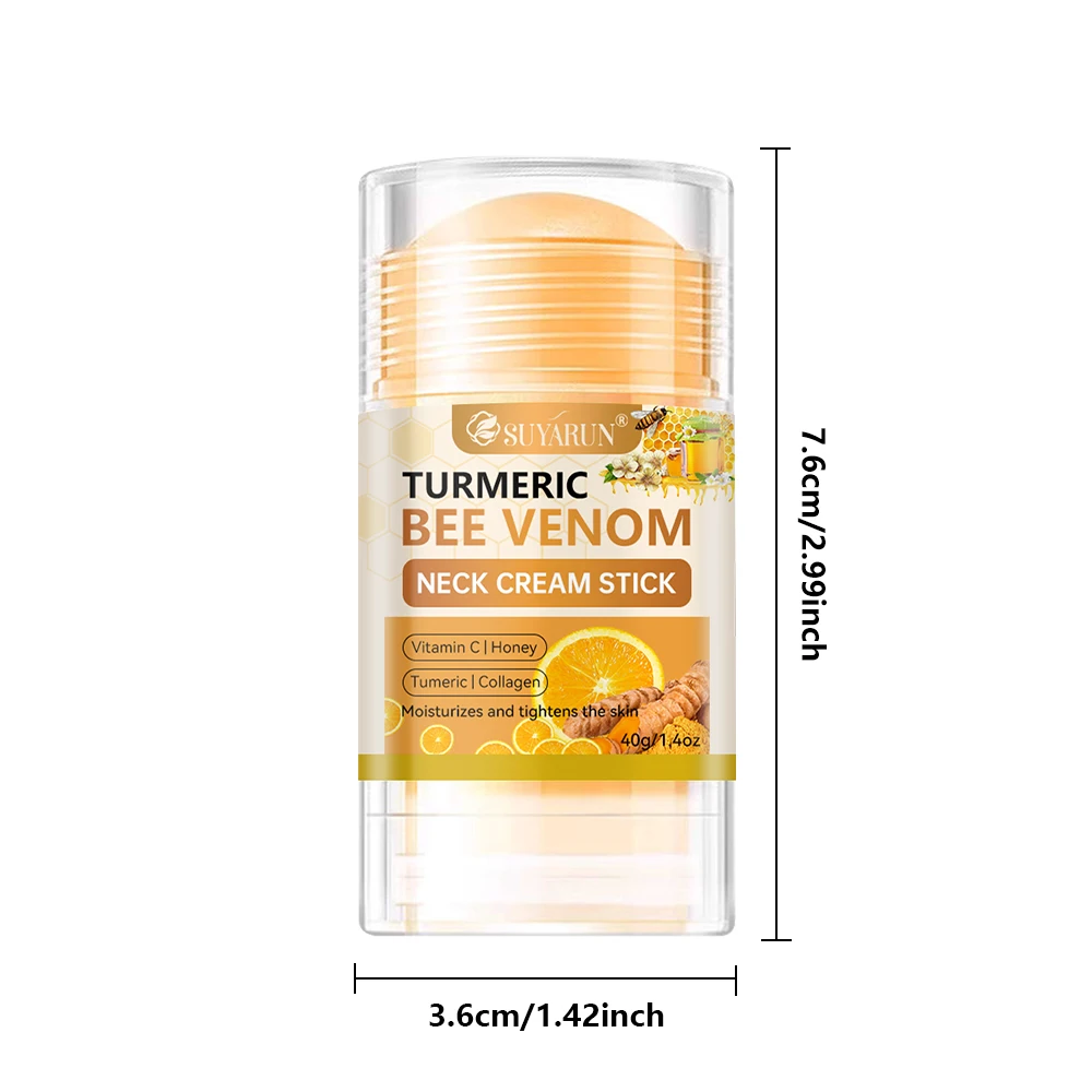SUYARUN Cúrcuma Bee Venom Neck Cream Stick - Reafirmante antienvelhecimento, redução de rugas, hidratante portátil para todas as pessoas.
