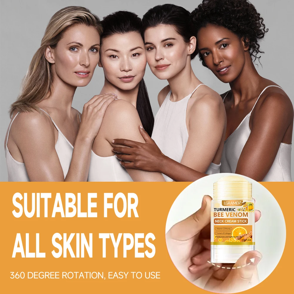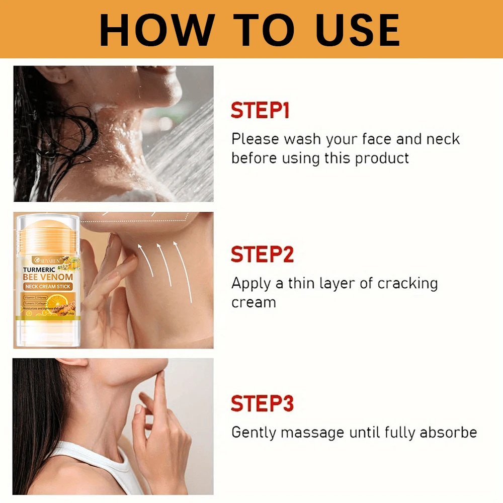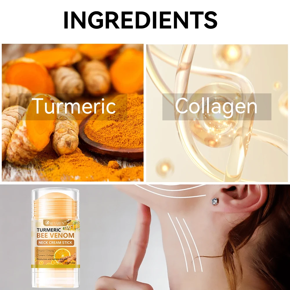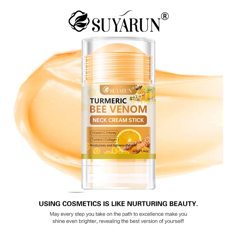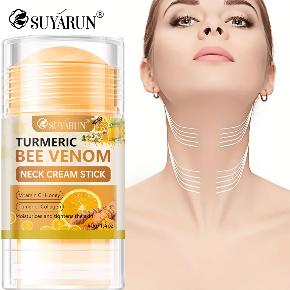 SUYARUN Cúrcuma Bee Venom Neck Cream Stick - Reafirmante antienvelhecimento, redução de rugas, hidratante portátil para todas as pessoas.